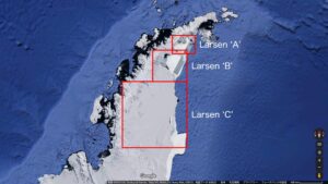 海に押し出された巨大氷河の崩壊。南極大陸の棚氷